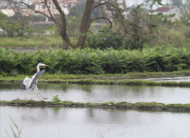 蒼鷺閒孤立 秧雞忙覓食