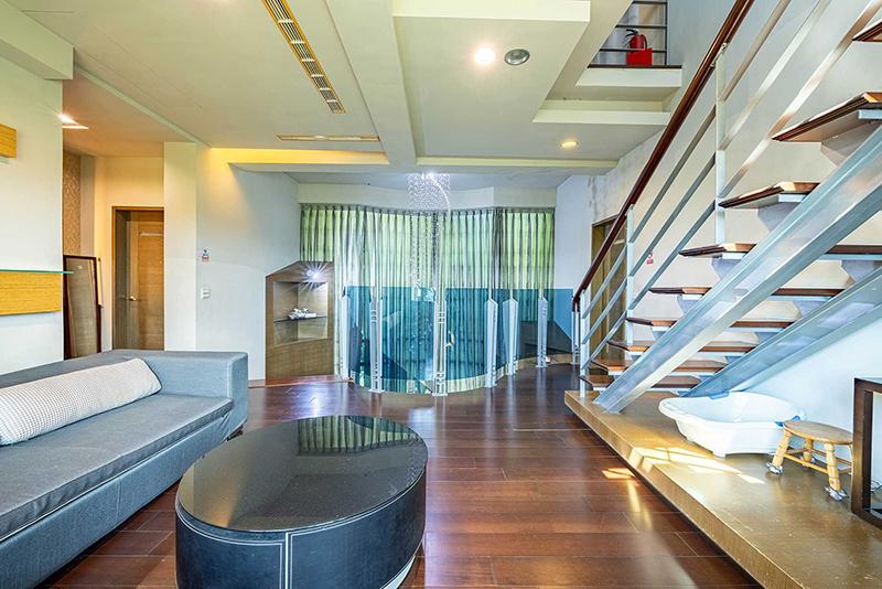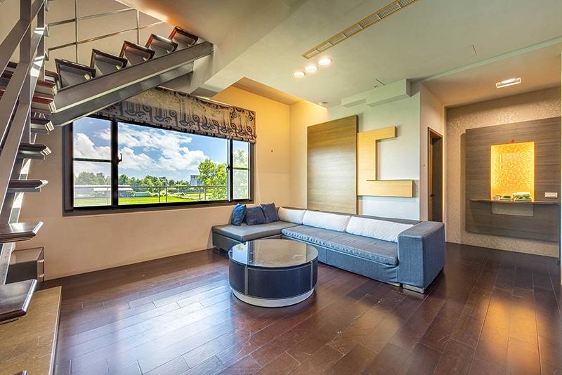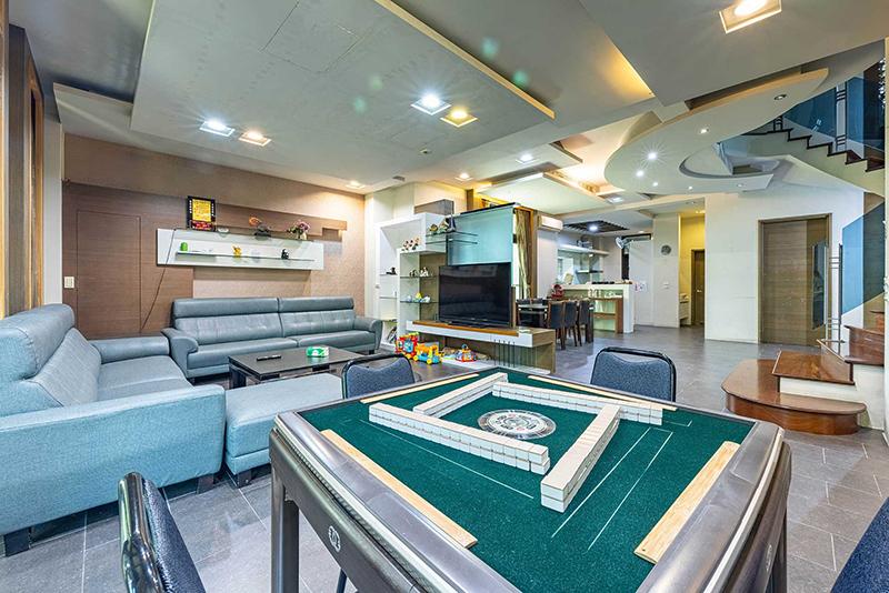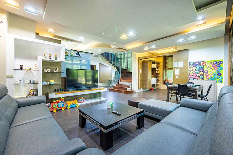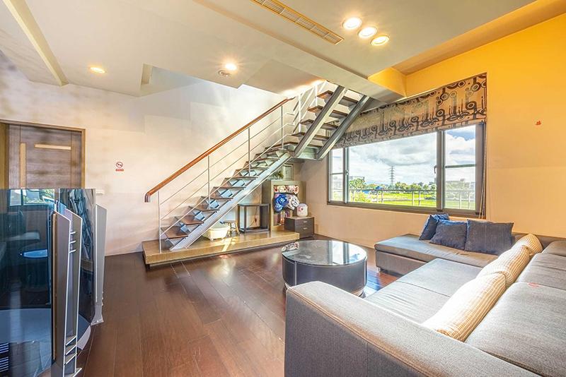 空間採鄉村風格設計,搭配大量木質元素與自然採光,營造出溫潤、放鬆的居住氛圍。 無論是池畔的發呆亭、戲水池的歡笑聲,或是夜晚KTV包棟歡唱的愉悅,都讓「幸福」成為這裡最真實的日常。